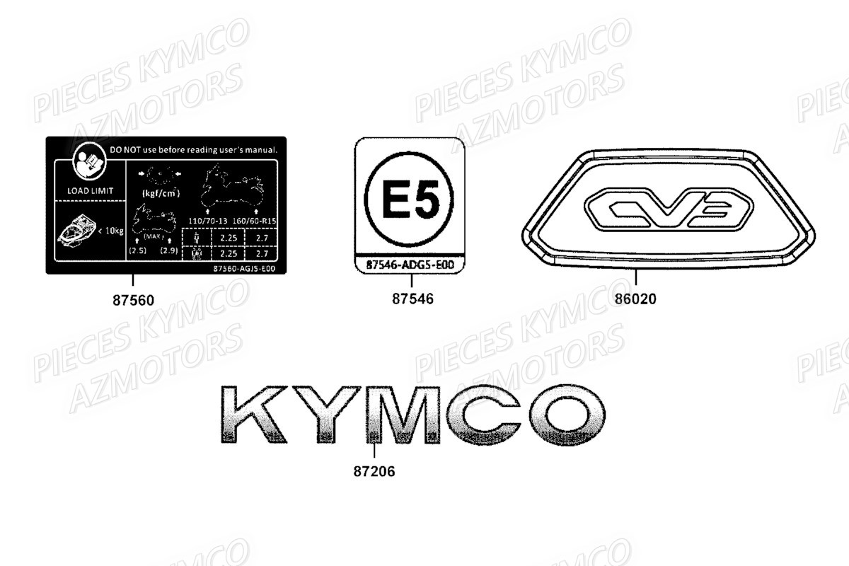 Microfiches et schema eclatés des Pièces Scooter Kymco CV3 550 4T EU V (SBA1CA)